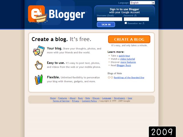 Berikut adalah tampilan Blogger dari waktu ke waktu: